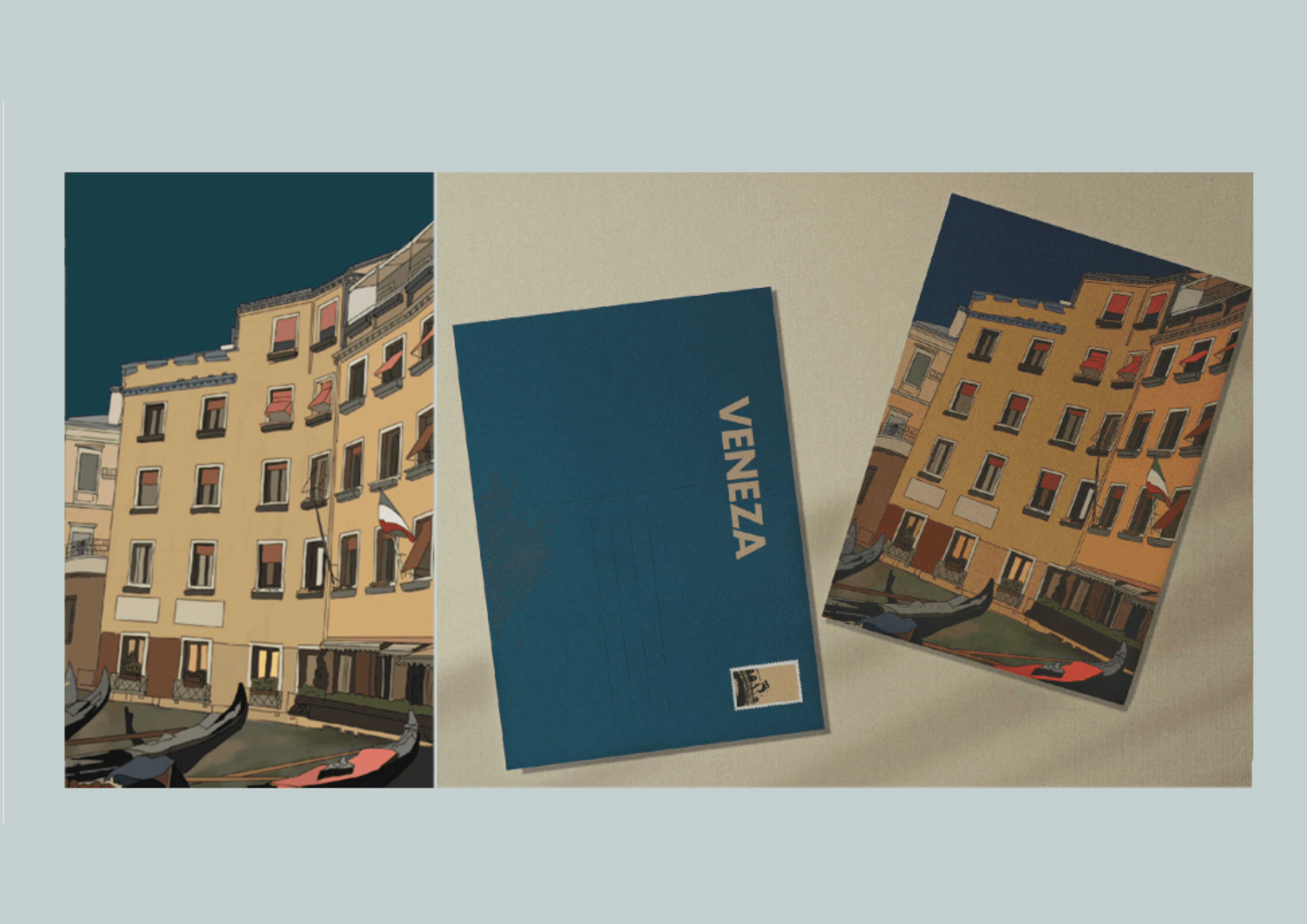 De Fotografias de Viagem a Ilustrações Este projeto pessoal documenta a criação de uma série de postais ilustrados, nascidos da paixão da designer por viagens e pelo hábito de colecionar postais. Em vez de simplesmente comprar recordações, escolhi transformar as minhas próprias fotografias de viagens (de locais como Lisboa, Budapeste, Veneza, Bellagio e Marrakesh) em desenhos personalizados.